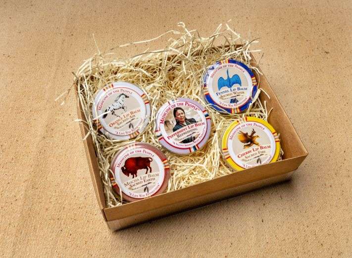 Contains .75oz. tins of Peppermint, Cherry, Orange, Fennel and Mocha Lip Balms